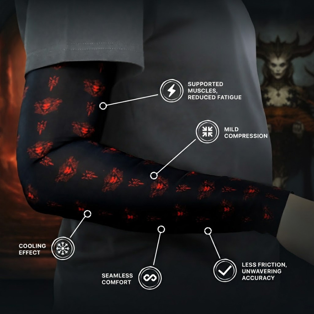 Рукав виготовлений із дихаючих матеріалів, що забезпечують щільну посадку. Це не тільки естетичний елемент, але й функціональний аксесуар, який покращує кровообіг і зменшує навантаження під час тривалих ігрових сесій. Він стає твоїм незамінним помічником у боротьбі з темрявою, додаючи сили для кожної нової перемоги.