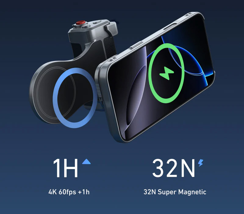 З вбудованим акумулятором 3200 мА·год і зарядкою через USB-C, цей грип стане вашим надійним супутником. Корпус із пластика PC, алюмінієвого сплаву та силікону забезпечує міцність і легкість, а магнітне кріплення для моделей із сумісністю MagSafe дозволяє швидко і зручно встановлювати телефон..jpg)
